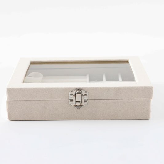 Jewelry Box Organizer | Velvet & MDF | Lockable | 20 x 15 x 5 cm | White