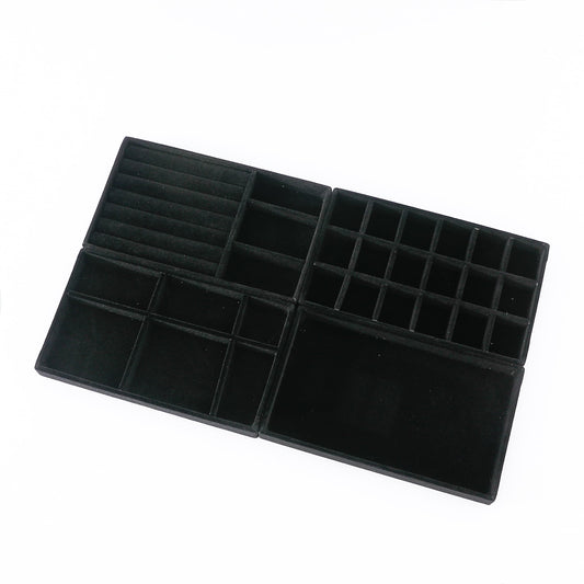 Kuber Industries 4 Pieces Velvet Jewelry Trays Organizer | Jewelry Storage Box | Jewelry Organizer | Showcase Holder Dresser Organizer for Earring Necklace Bracelet Ring | Pack of 1 |YBL4-03 | Black