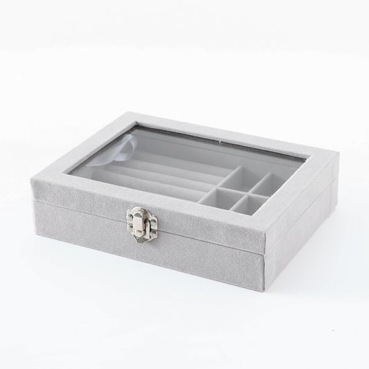 Homestic Pack of 1 Velvet Jewelry Box Organizer | Jewelry Storage Box | Jewelry Organizer | Showcase Holder Dresser Organizer for Earring Necklace Bracelet Ring |YXX-017 | Grey