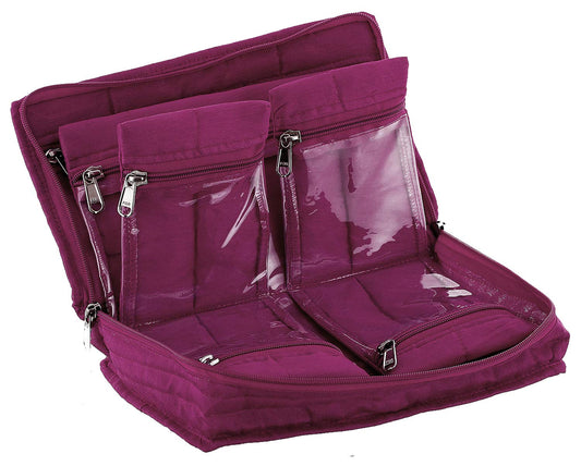 Premium Cotton Jewellery Kit|Embroidered Front with Zipper Closure|2 Large & 4 Small Pockets|Size 27 x 16 x 7 CM, Pack of 1 (Maroon)