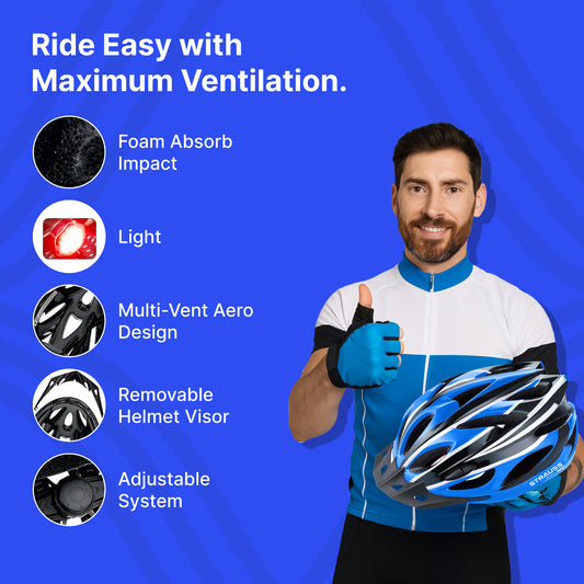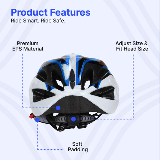 Strauss GlideX Cycling Helmet | Light Weight with Superior Ventilation | Mountain, Road Bike & Skating Helmet with Premium EPS Foam Lining | Ideal for Adults and Kids,(Blue)