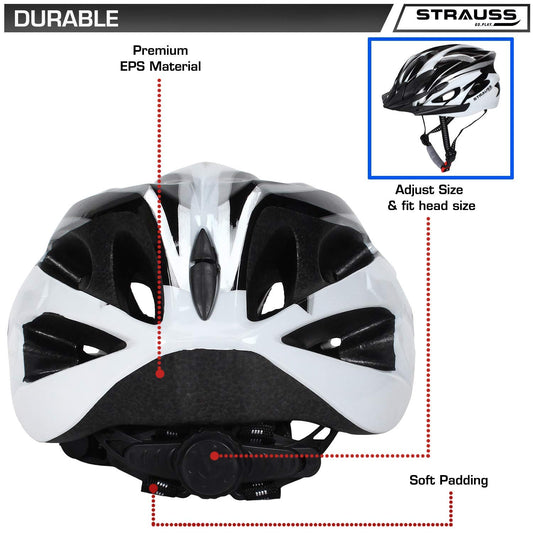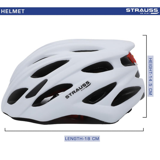 Strauss Veloguard Cycling Helmet | Light Weight with Superior Ventilation | Mountain, Road Bike & Skating Helmet with Adjustable Size | LED Safety Backlight | Ideal for Adults and Kids,(White)