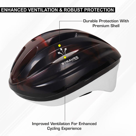 Strauss Cycling Helmet , ELITE | Light Weight with Superior Ventilation | Mountain, Road Bike & Skating Helmet With Premium White EPS Foam Lining| Ideal for Adults and Kids| Size: Junior, (Black and Red)