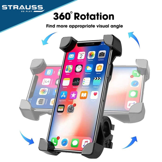 STRAUSS Bike Mobile Holder - Adjustable 360° Rotation Bicycle Phone Mount | Anti Shake and Stable Cradle Clamp | Bike Accessories | Bike Phone Holder for Maps and GPS Navigation (Black)