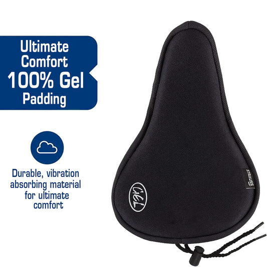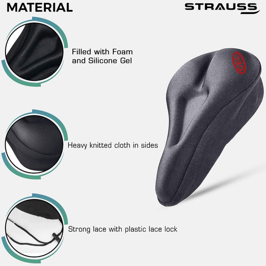 Strauss Premium 100% Silicone Gel Seat Cover with Anti-Slip Granules & Soft, Thick Padding | Superior Comfort, Breathable Design | Comes with Adjustable Rope Straps & Fits All Cycles, (Black)