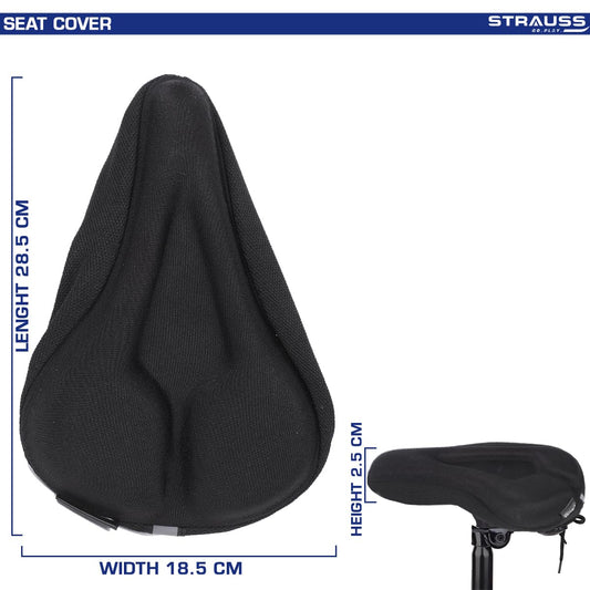 Strauss Bicycle Silicone Cycle Seat Cushion Cover | Soft & Washable Gel Saddle Seat | Fits Narrow/Slim Seats | Cycle Accessories | Comfortable Bike Seat Cover for Cycling,(Black)