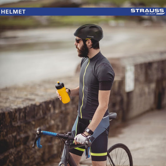 Strauss GlideX Cycling Helmet | Light Weight with Superior Ventilation | Mountain, Road Bike & Skating Helmet with Premium EPS Foam Lining | Ideal for Adults and Kids, (Black)