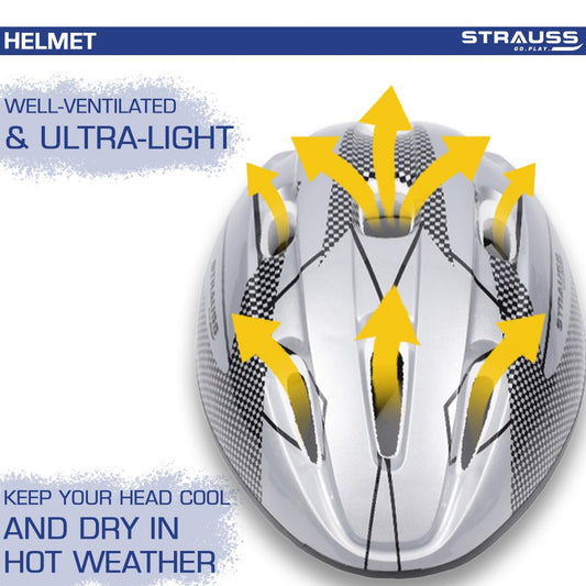 Strauss Kids Cycling Helmet | Light Weight with Superior Ventilation | Multisport Helmet for Cycling,Skating & Skateboarding with Adjustable Size | Ideal for Boys and Girls, (Blue)
