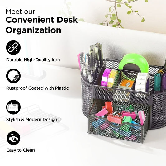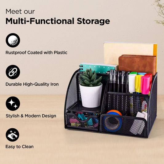 Office Table Accessories | Storage Organiser | Office Desk Accessories | Stationery Kit Storage For Office, Reception Table, Study Table, Pen Holder For Office Metal Mesh Design