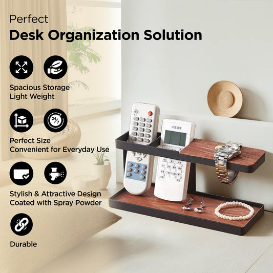 Desk Organizer - Stylish Remote Holder & Table Organizer | 24.4 cm x 9.5 cm x 11.2 cm | Black