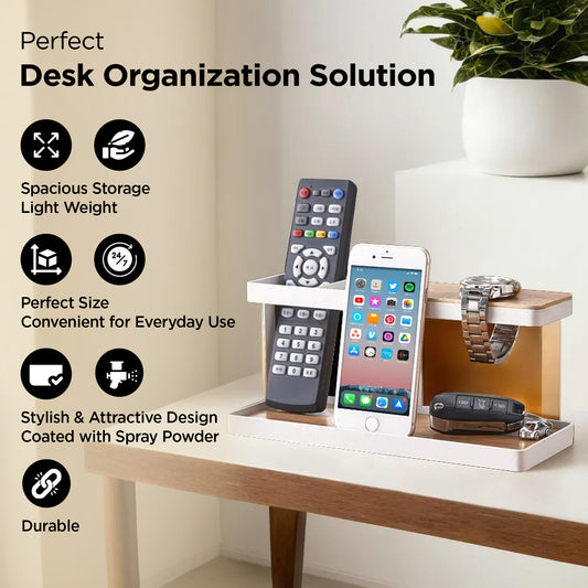UMAI Desk Organizer - Multipurpose Table Organizer for Home Office | Remote Holder | 25.5x10x12 cm | White
