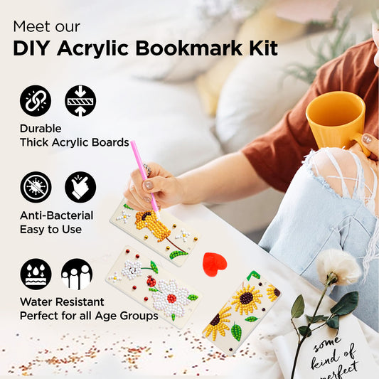 Acrylic DIY Bookmark Diamond Painting Kit for Kids | Bookmarks for Books Novels | Bookmark Gifts for Booklovers | Multicolor Set of 4