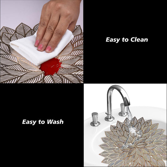 Placemat | Placemats for Dining Room | Designer Table Mat Set | Placemats for Kitchen Table | Side Table Placemats | Round Flower Placemat | 6 Piece Set | Golden