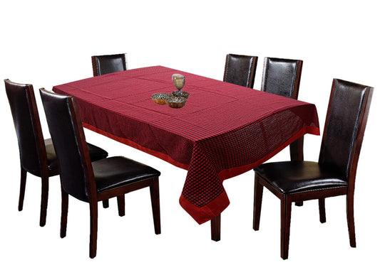 100% cotton Dining Table Cover 6 seater | Checkered Pattern Rectangular Large Dining Table Cloth for Living Room | Hall | Home | Restaurant (90 x 60 Inches Size) (Maroon)