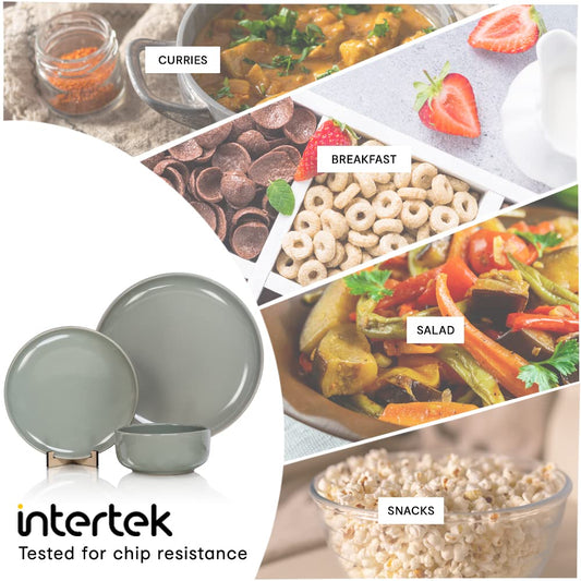 Combo: 12-Piece Stoneware Dinner Set - Microwave Safe | 4 Bowls, 4 Plates | Ceramic | Grey