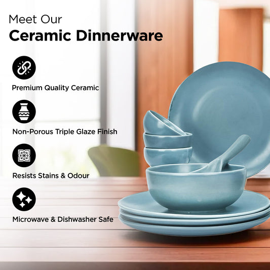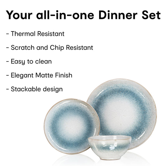 Tapa 12 Pieces Dinner Set | Premium Crockery for Dining Table| Lead & Cadmium Free, Microwave & Dishwasher Safe| Stoneware| Matt Glaze Finish | 4 Dinner Plates, 4 Side Plates, 4 Bowls | Blue