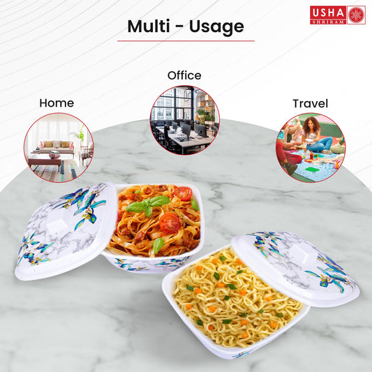 Melamine Big Serving Bowl with Lid (2 Pcs - 1.4L each) |Rice Bowl for Serving | Unbreakable | Heat Resistant | Mixing bowl with Lid | Light Weight | BPA Free (Blue Marble)