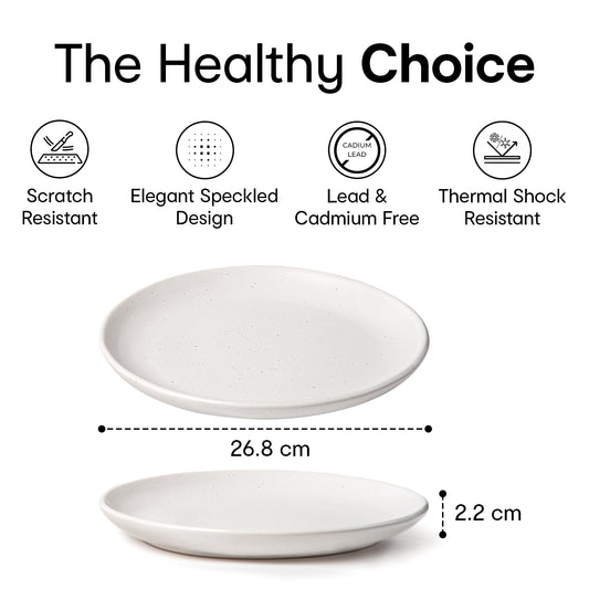 Bodrum Stoneware Speckled Dinner Plates - Set of 2 | Premium Crockery for Dining Table Ideal for Serving Starters, Salad, Dessert | Designer Plates for Home, Kitchen, Restaurant | 11", White
