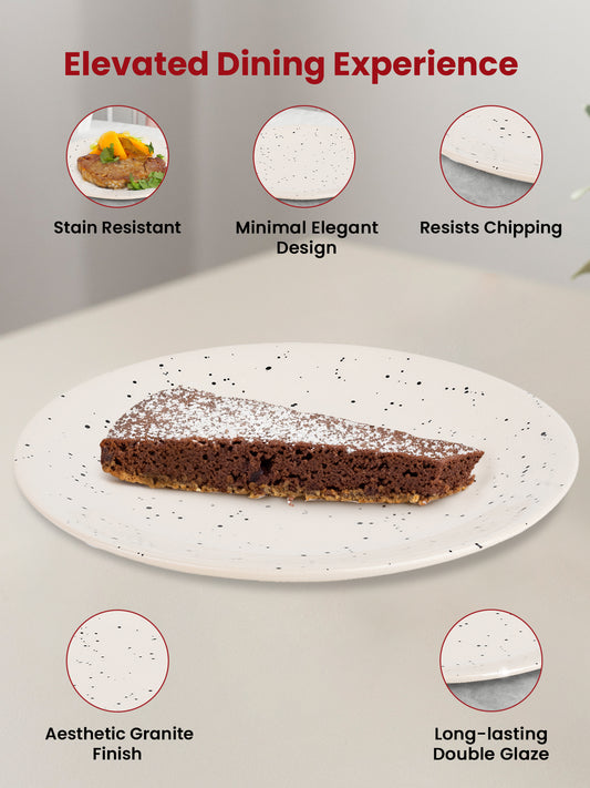 USHA SHRIRAM Ceramic Full Dinner Plate (10 Inch - White with Dots) Microwave Safe Plates | Chip Resistant Dinnerware |Dinner Plate for Family Occasion | House Warming Gift | Ceramic Plates for Dinner