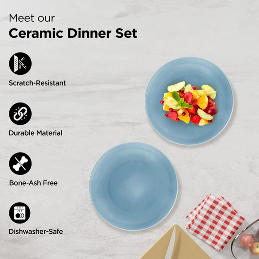 USHA SHRIRAM Ceramic Dinner Set (12 Pcs) | Microwave Safe Dinner Plates and Bowls Sets Cookware | Chip Resistant Dinnerware Sets | House Warming Gifts New Home for Couple Men Women (Blue)