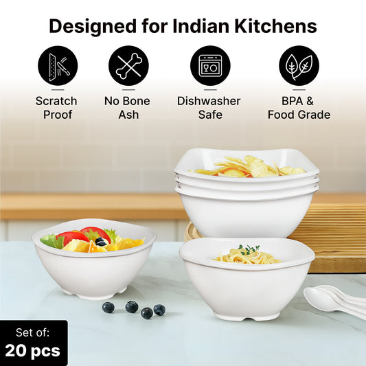Pack of 20: Unbreakable Melamin Dinner Set | 20 Pieces | Brown White