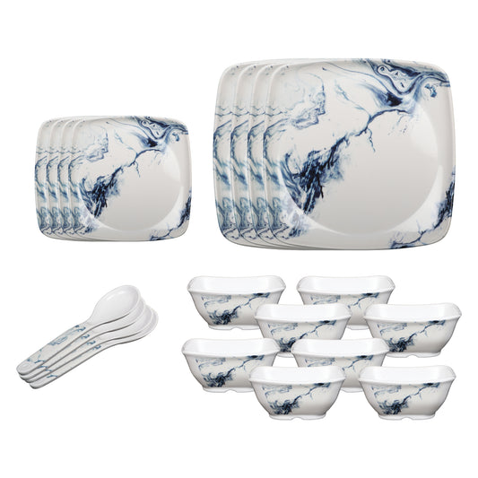 Pack of 20: Melamin Dinner Set - Durable Kitchen Plates & Bowls | Blue White