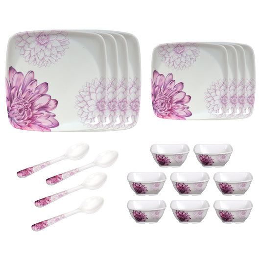 Pack of 20: Melamin Dinner Set - Floral Design | Serves 4 | Purple, White