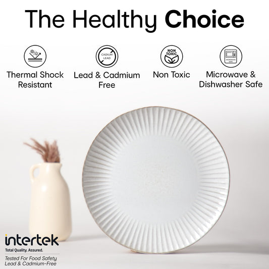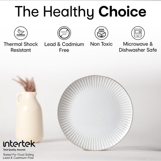 Fiore Ceramic Dinner and Side Plate Combo (Set of 4) (2 of Each)| Dishwasher Safe | Food Grade | Dinnerware | Bone-Ash Free | Crockery for Dining & Gifting