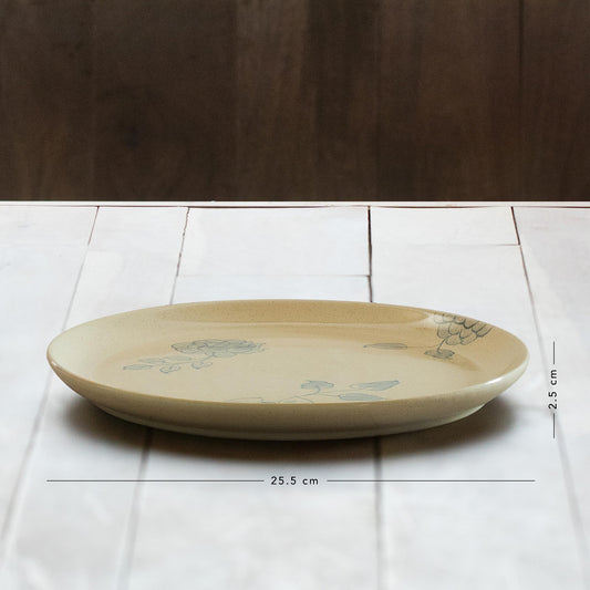 10" Sable Stoneware Dinner Plate | Set of 2 | Unique Embossed Design | Microwave Safe, Dishwasher Safe | Hand Glazed | Natural Beige and Grey Color | BPA Free