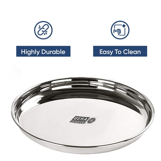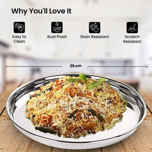 Stainless Steel Plate Set (29cm - 6Pcs) | Heavy Guage | Family Dinner Gift Set | Deep Base | Glossy Finish, Durable, Easy to Clean, Stackable