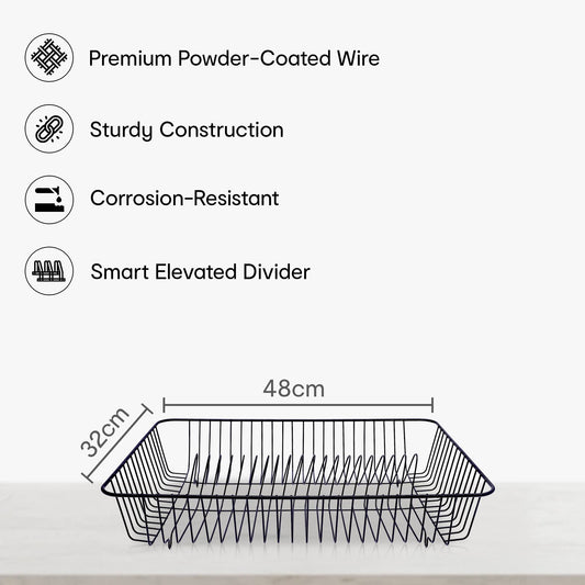 Powder-Coated Wire Frame Kitchen Dish Rack - Rustproof, Includes Tray & Holder, 42.5 x 10.5 x 32.5 cm, White