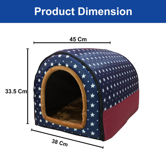Kuber Industries Foldable Igloo Dog House | Soft & Adjustable Travel Pet Shelter for Cat & Rabbits with Sleeping Bed | Cave Bed Tent Shelter for Pets | Medium - Blue Polka Dots