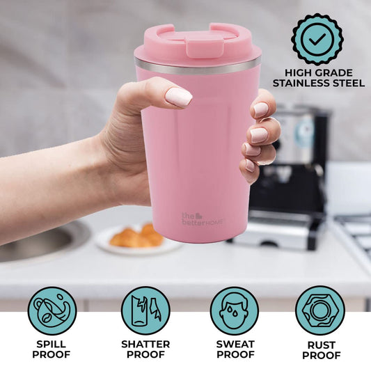 380ml Insulated Coffee Cup Tumbler | Double Walled Stainless Steel | Pink