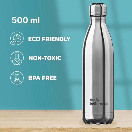 500 Stainless Steel Insulated Water Bottle 500ml | Thermos Flask 500ml | Hot and Cold Steel Water Bottle 500ml (Pack of 1, Black)