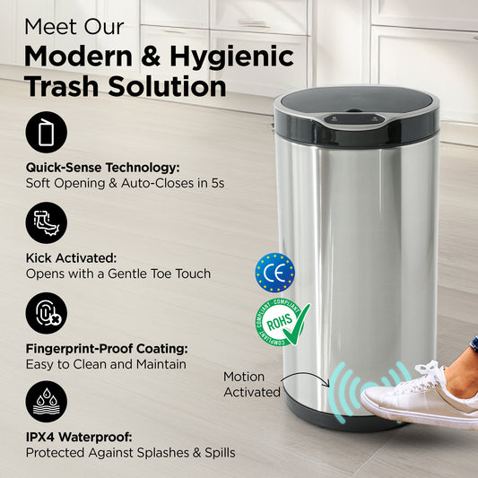 Automatic Motion Sensor Dustbin 30L | Stainless Steel with Lid | Kitchen & Bathroom