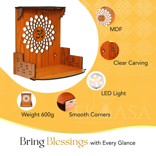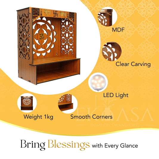 Wooden Pooja Mandir for Home Wall Mounted | Wooden God Temple for Home | Pooja Stand for Home | Puja Mandir for Home | Pooja Unit for Home with LED Spotlight | Temple for Office