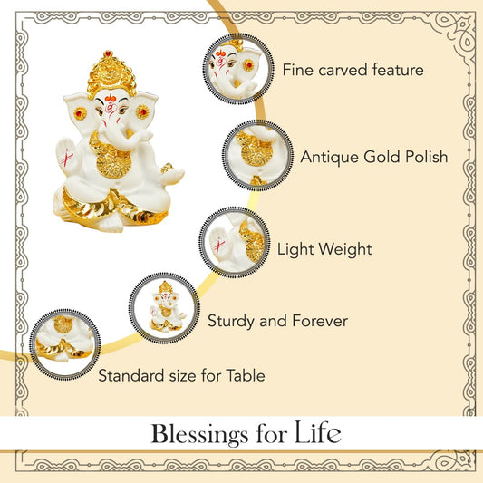 Aura Series Marble Dust Ganesha Idol (5 inch) | Gold Plated Ganesh Murti for Pooja Room, Home Decor, Office Desk | Resin Vinayagar Statue for Diwali Puja | Vinayaka Idol for Gifting