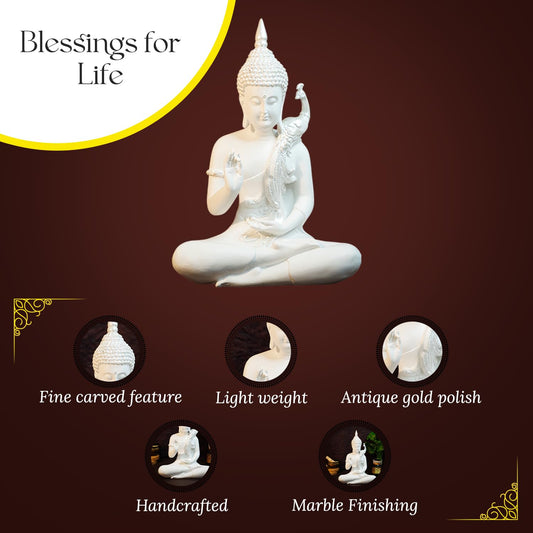 Marble Dust White Big Buddha Statues for Living Room (Size: 32 cm, 12.6 inches) | Lord Buddha Statue for Home Decor | Gautam Buddha Murti Idols | Budha Sculpture Home Decor Showpiece Idol