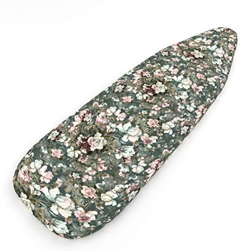 Homes Ironing Board Cover with 4mm Extra Thick Felt Pad for Steam Press - Green Roses - (Fits Standard Large Boards of 125 x 39 cm) Elastic Fitting, Heat Reflective, Protective