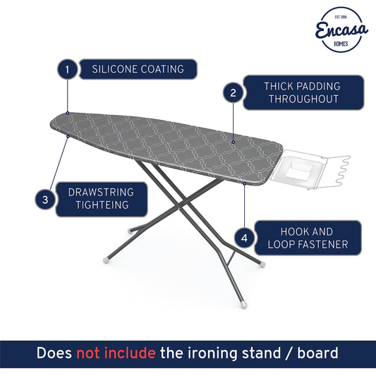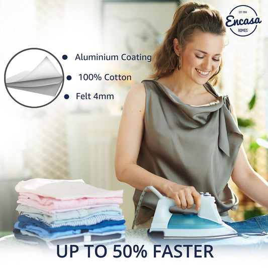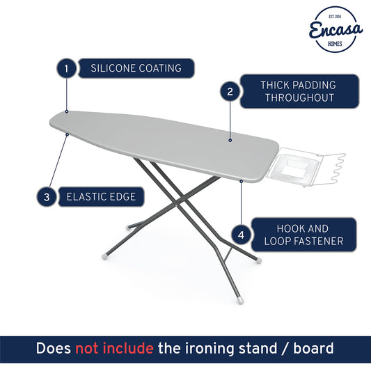XO Ironing Board Cover with 4mm Extra Thick Felt Pad for Steam Press - Grey - (Fits Standard Large Boards of 125x39 cm) Heat Reflective, Protective, Scorch Resistant