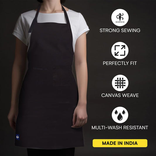 Homes Cotton Stain-Resistant Kitchen Bib Apron - Full Black With Adjustable Straps, Pocket & Towel Holder | For Home & Outdoors Cooking - Men & Women - 68x85 cm