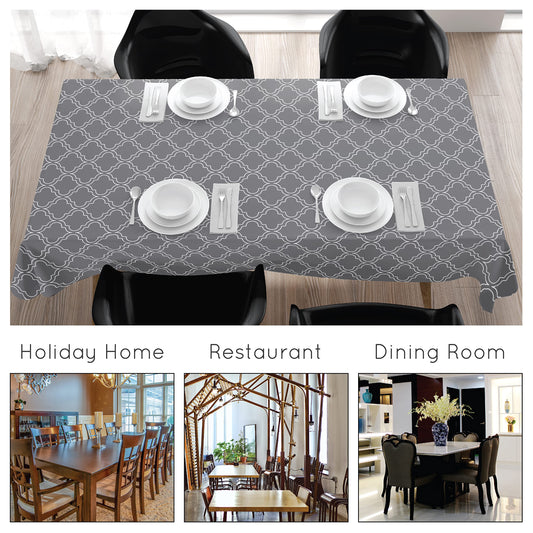 Homes Printed Table Cloth 6 Ft For 4 To 6 Seater Dining Table, Silky Polyester, Machine Wash To Remove Food Stains- Grey Trellis, Rectangular