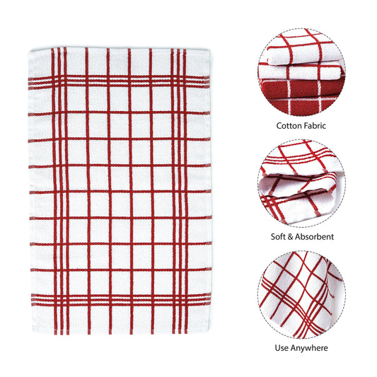 XO Kitchen Towels and Dish Cloths Sets | Red Terry Highly Absorbent Cotton Terry Towels | Multipurpose for Washing Dishes and Cleaning