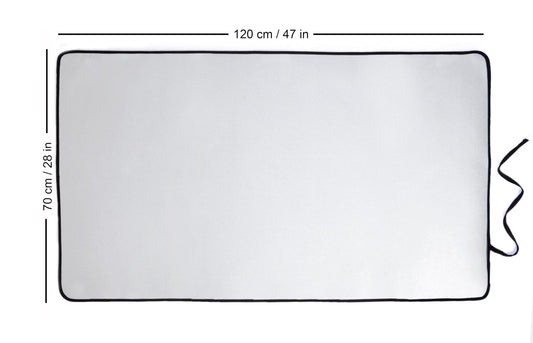 Homes Ironing Mat/Pad - Metallic Silver (Large 120x70 cm) with 5mm Foam Padding & Silicone Iron Rest for Quick Steam Pressing on Tabletop or Bed - Heat Reflective, Portable, Durable