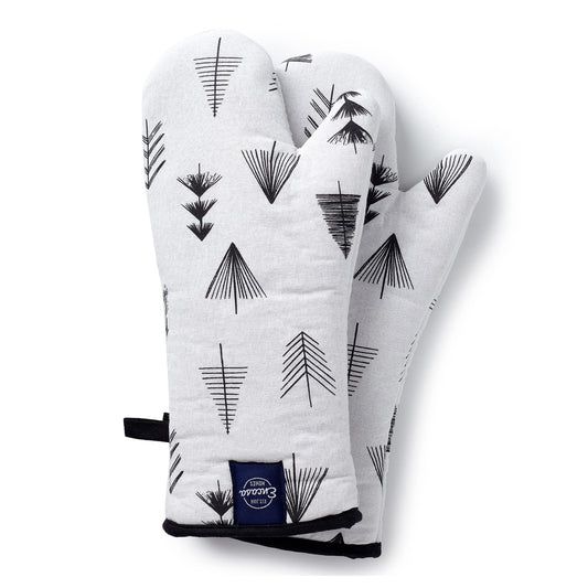 Homes Extra Long 35 cm Microwave Oven Gloves Mitts (2 pcs) for Kitchen Cooking - Daisy Grey - Heat Resistant, Thick & Safe, Protection of Hands from Hot Utensils, Gas Flame, Grill, Barbecue