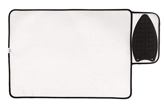 Homes Ironing Mat/Pad - Metallic Silver (50x70 cm) with 5mm Foam Padding & Silicone Iron Rest for Quick Steam Pressing on Tabletop or Bed - Heat Reflective, Portable, Durable