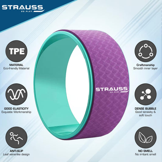 Strauss Yoga Wheel | Ideal for Stretching, Backbends, Exercise, Deep Tissue Massage & Back Pain Relief | Dharma Yoga Prop Wheel with Ultimate Comfort | Set Of 3, (Purple)