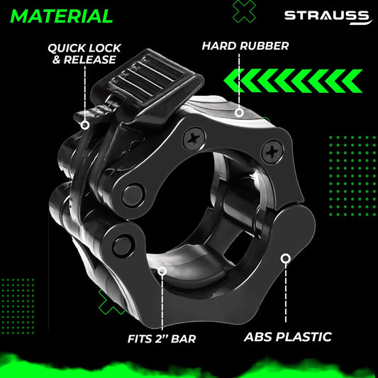 Strauss Barbell Lock Collars | Multi-Function Power Cage Rack Crossfit Attachments | J-Hooks | Weight Plate Holders | Gym Equipment Ideal for Workout, Weightlifting, Fitness & Strength Training (Red)