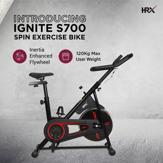 Hrx Ignite Spin Bike - Adjustable Resistance, Ideal for Home Gym | Standard Size | Black