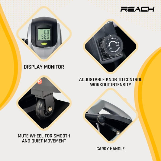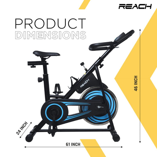 Reach VS Spin Bike with 6.5 Kg Flywheel | Adjustable Resistance & LCD Monitor | Fitness Cycle for Home Gym Workout | Max User Weight 110kg | Orange